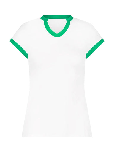 Introducing the Back Nine Tee - ultra-feminine design crafted from our performance Poly Elastane fabric! Delightfully detailed with a scalloped nec...