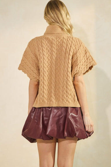 Cable knit pullover sweater with short batwing sleeves and turtle neck.