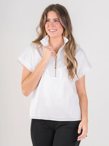 A best selling sensation refined in our classic white cotton poplin. The Poppy Pullover is most loved for its unique and sporty twist on classic, e...