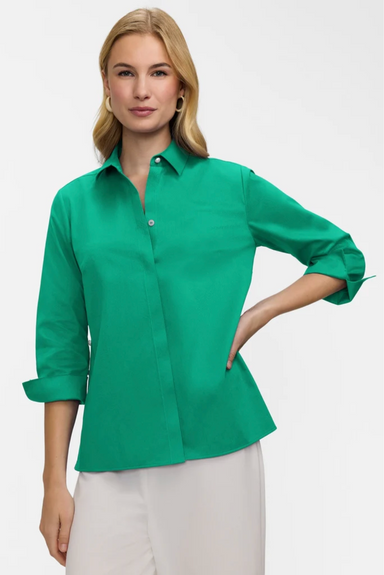 Beatrice shows off the classic button-down look in smooth stretch matte sateen for a softly structured feel with comfortable give. A hidden placket...