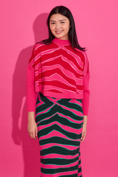 The Leona sweater is here in Ziggy Lipstick! Pair with the Vivian skirt and your favorite boots for the perfect he...