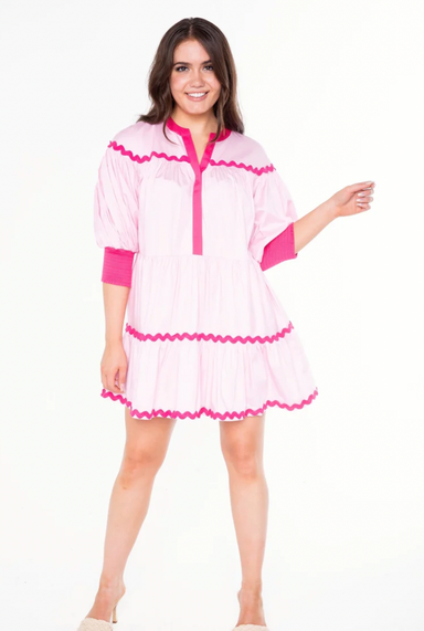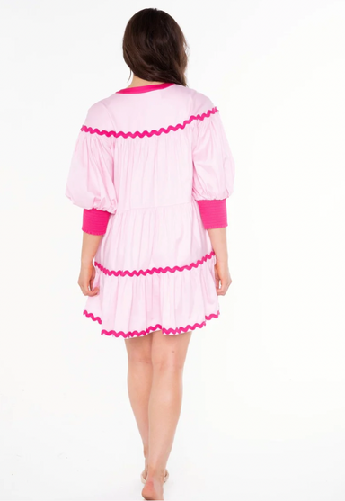The Emery Dress is a vibrant mini that captures attention with its ziggy palm print. Featuring a relaxed silhouette with a gathered neckline and lo...