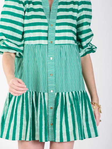 Ease, updated. This edition of Agnes plays with stripe proportions for a fresh twist on a timeless classic. Rendered in basil and silver, the print...