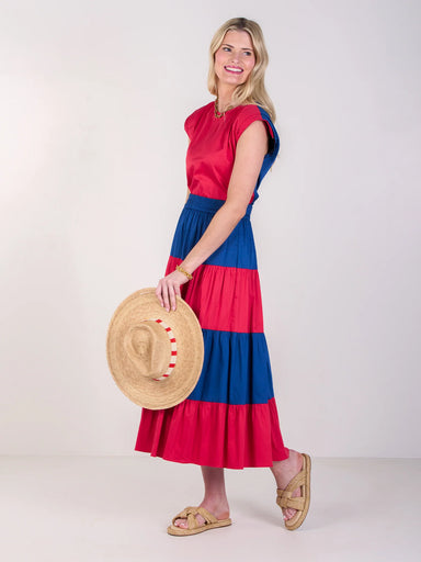 The Tiered Maxi Skirt in Americano brings bold, patriotic fashion to summer styling. Crafted in crisp cotton poplin, its color-blocked tiers create...
