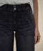 • Discover the perfect blend of style and comfort with these high-rise straight leg jeans in a sleek black wash. Featuring unique porkchop pockets, double belt loops, and stylish double front buttons, they’re crafted from very stretchy fabric for a flattering fit that moves with you all day long.