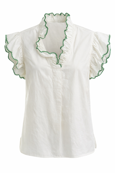 This has to be one of our new favorite tops! We love the ruffle green trim detail on the collar and the button down style is perfect for every occa...
