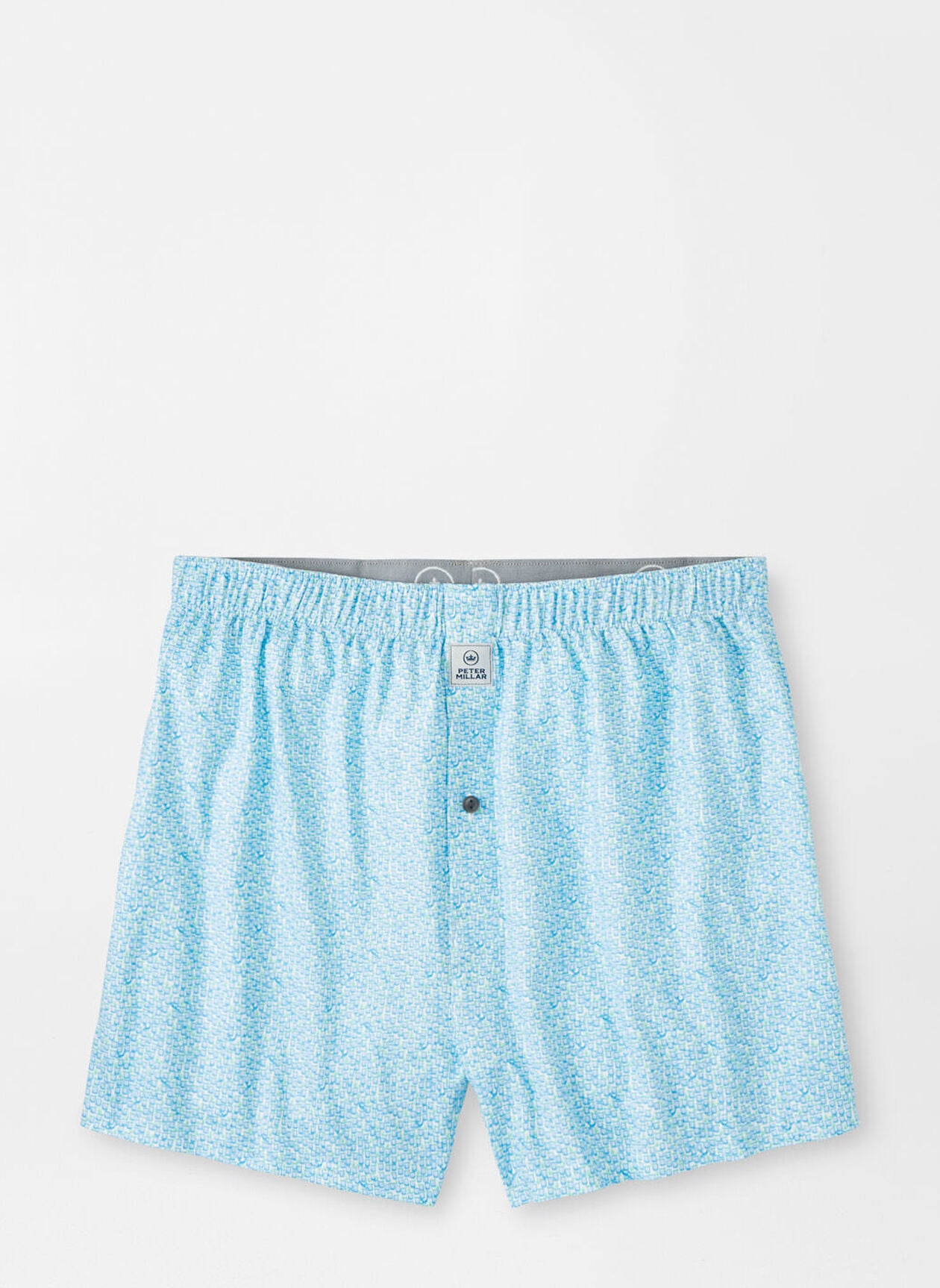 These novelty print boxers are designed with a supremely soft fabric that delivers enhanced performance and comfort. This style offers wicking, easy-care and odor-resistance, with comprehensive four-way stretch. These boxers feature a custom-designed shaker print. Finished with a Peter Millar logo-lined waistband and a button fly.