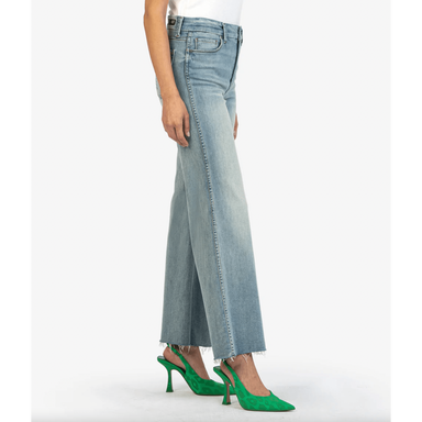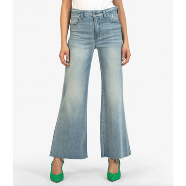 Made from 4-way stretch knit denim, these high-waisted, wide-leg pants feature a concealed patented waistband, back patch pockets with a center bac...