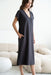 Soft textured cotton blend with subtle structure - Clean V-neckline with dropped shoulders and short sleeves - Relaxed, easy silhouette that drapes away from the body - Midi length with hidden side pockets for functional ease - Effortless one-and-done style for everyday wear