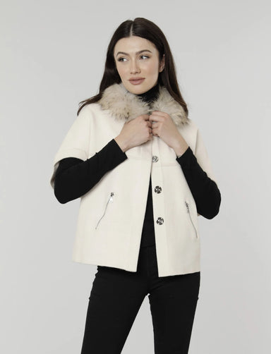 Drape yourself in the coziest comfort this fall with our Structured Short Sleeved Cardigan with Faux Fur Collar. Now available in classic Animal Pr...