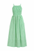 Solid striped sleeveless midi dress featuring smocked bodice. Adjustable shoulder straps. Side pockets. Lined. Woven. Non-sheer. Lightweight.