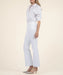 These white jeans feature a raw hem and a stylish, flared leg that effortlessly transition from casual to elegant, offering versatility and flair in one flattering design.