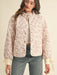 Be the trendsetter that you are in this floral quilted jacket! Quilted puffer shapes this chic jacket that features delicate and lovely floral print throughout and has a stand collar, a button down closure, and drop shoulder long balloon sleeves. A gorgeous ribbon detail ties at the cuffs for an extra romantic look. Contrast binding lines the edges and pockets of this jacket. + Floral quilted jacket with ribbon detail + Stand collar + Snap button closure + Contrast binding trim + Drop shoulder long balloon sleeves + Tying ribbon detail on cuffs + Patch pockets + Lined