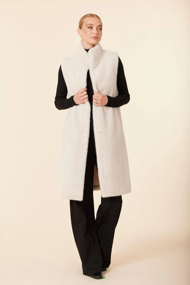 Layer in luxury with our creme faux fur long vest, a chic essential for Fall & Winter. Designed with a sleek open front and soft plush texture,...