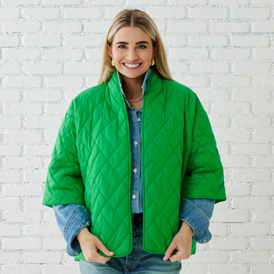 Stay warm and bright in the Penny Puffer jacket! The 3/4 sleeves and lightweight material make it perfect for layering on cooler days! Dress it up ...