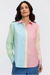 A fresh twist on a Foxcroft favorite. Meghan balances easy polish with personality, featuring our crisp pinpoint oxford in a palette of colorblocked stripes. Relaxed but refined, it drapes beautifully and flatters every shape. A contrast placket adds the perfect pop of detail—bringing modern energy to a timeless classic.