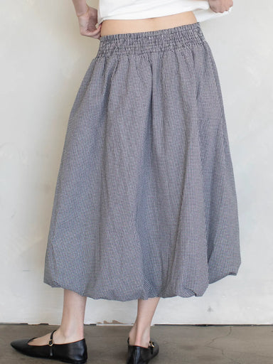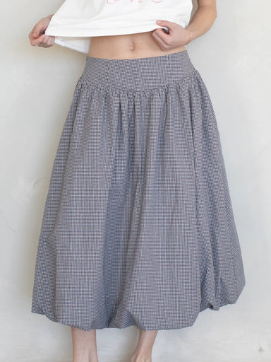 Trendy gingham balloon midi skirt. Lightweight and breathable! Care Instructions: Hand wash Fabric: Self: 100% Cotton Lining: 100% Rayon