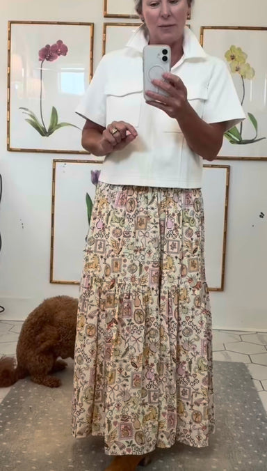 Elevate your look with our maxi Market Skirt. Featuring a tiered body and adjustable elastic waistband, this breezy skirt was designed with comfor...