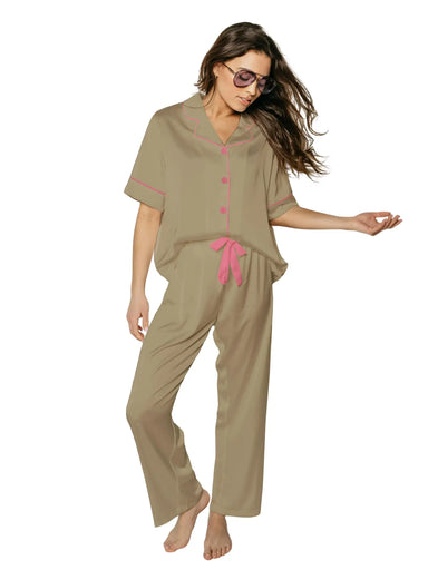 Satin Bow on the Cuffs Pajama Top - Contrast piping - Cuffs ribbon detail - Long sleeves - Chest pocket - Button down closure. The Model is Wearing...