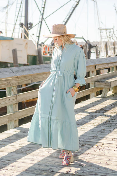 The Jaelynn Dress. A knee length poplin stripe button up dress made with high quality cotton. Front Pocket. Tiered back side. Easy relax fit. Styli...