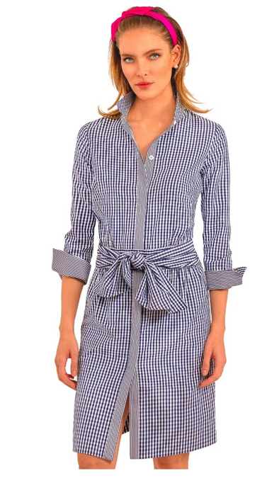 Meet the Carrie Dress! This playful caftan style is perfect for any casual occasion, with a fun navy blue detailing. Stay stylish and comfy with th...