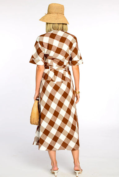 The Collins Dress in Brown Gingham is a statement piece that combines sophistication with femininity. Her fitted torso is beautifully balanced by d...