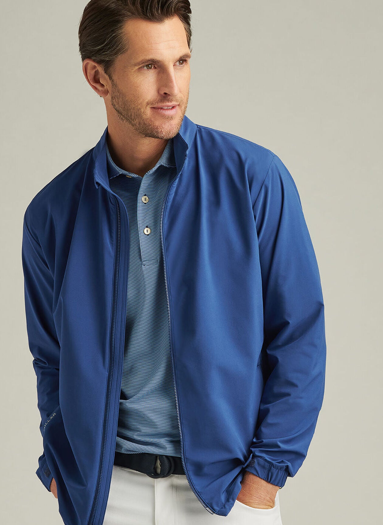 A streamlined companion perfect for blustery weather on and off the golf course, the Dunes is made from a double-weave performance fabric that offers four-way stretch and superior wind and water resistance. A velcro cuff allows for an optimal fit that won't get in the way of your swing. Finished with a two-way zip closure.